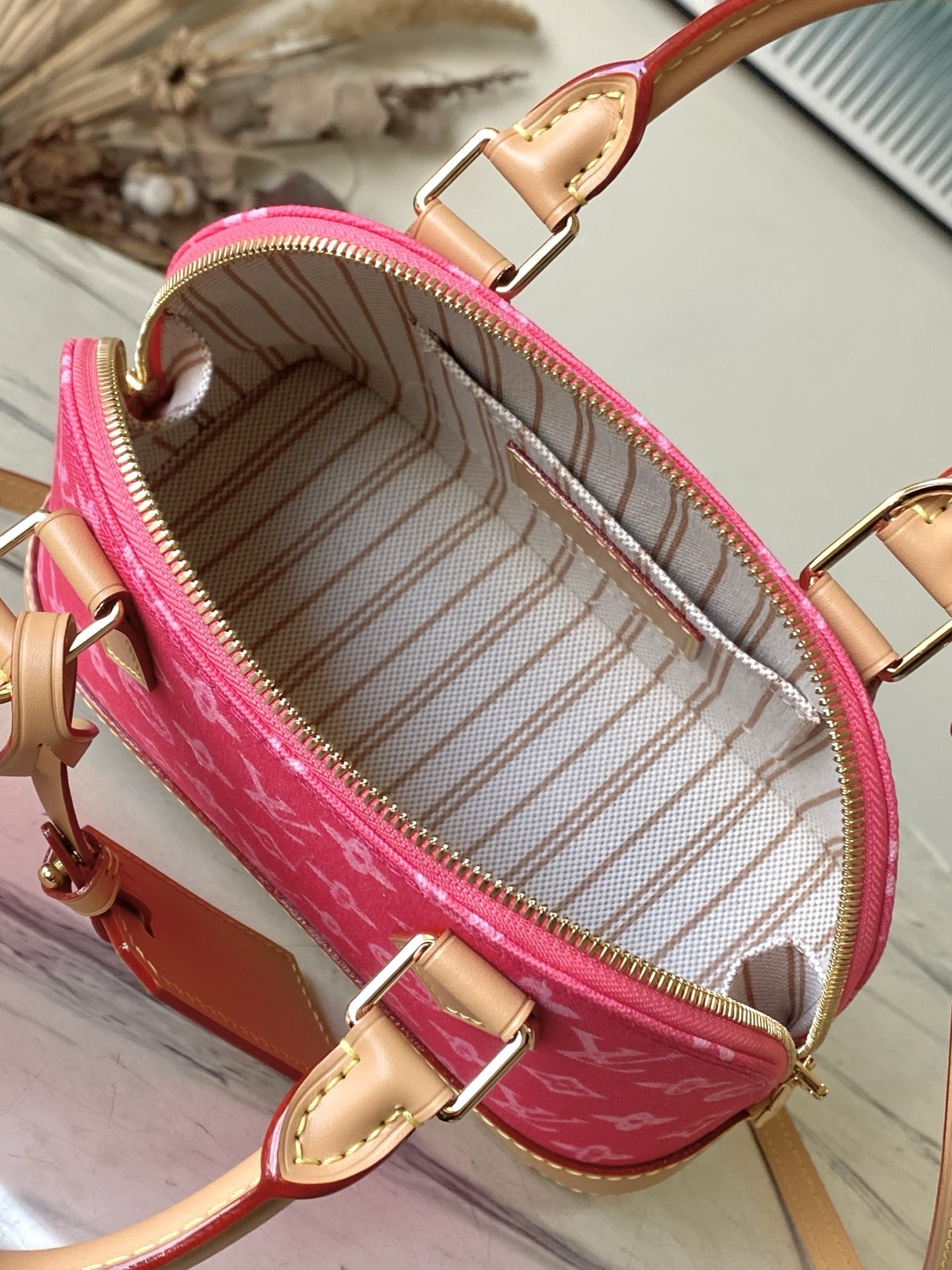 This limited-edition Monogram canvas Alma BB handbag, part of the 130th anniversary collection, draws inspiration from the Art Deco style of 1934, featuring an elegant design crafted from Monogram canvas. A striking padlock and key, a Toron handle, and a leather key pouch add classic touches, while a detachable and adjustable shoulder strap allows for convenient crossbody wear.