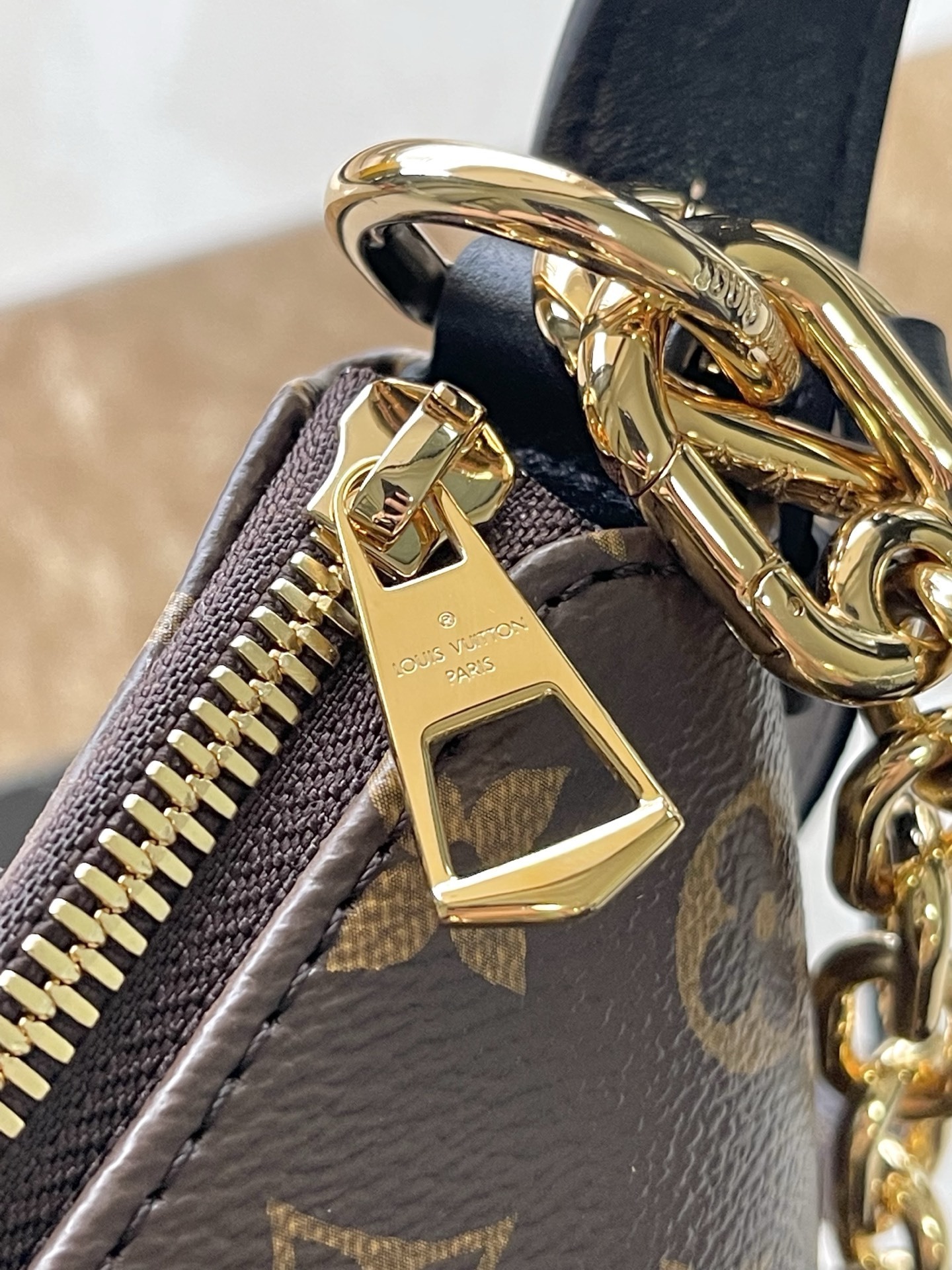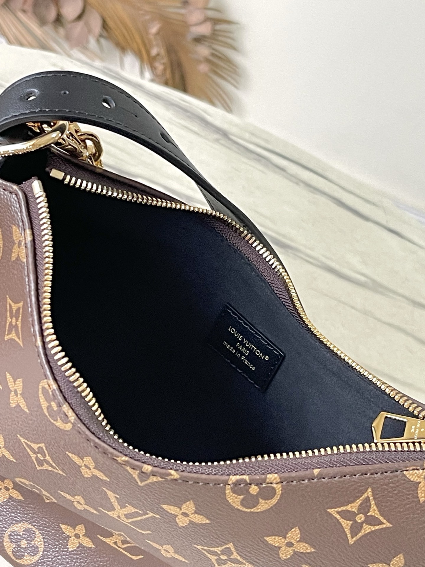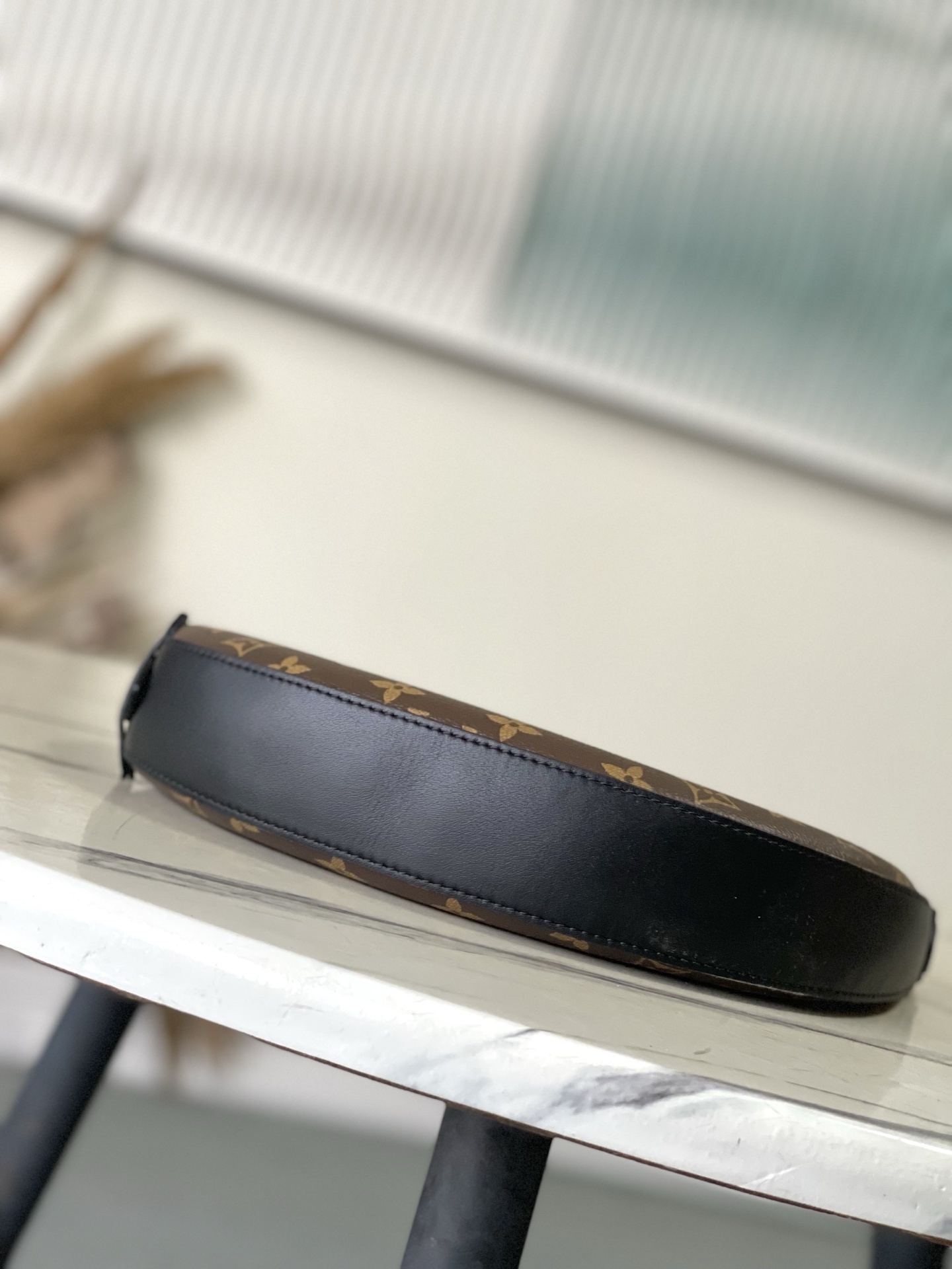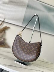The Cookie BB handbag is crafted from Monogram coated canvas, with contrasting leather trim highlighting its crescent shape. Its lightweight design, combined with an adjustable handle and detachable chain, allows for versatile crossbody and shoulder carrying options. The two ends of the bag can also be connected to create a trendy wristlet style.