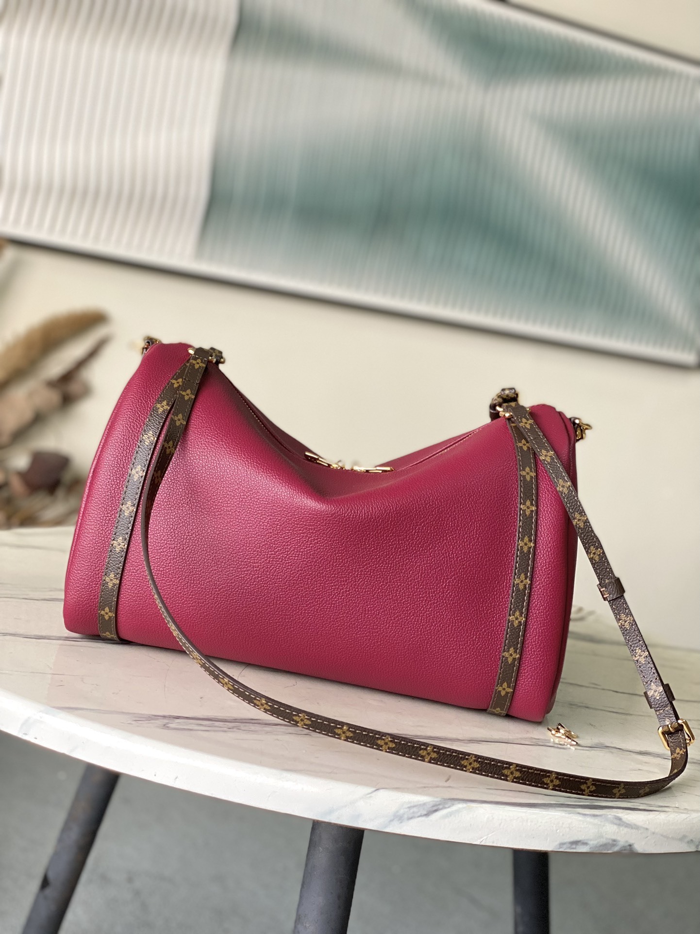 This exquisite Express medium-sized handbag is crafted from cowhide leather and echoes the rich color combinations of the ready-to-wear collection. Monogram coated canvas trim complements the lining; the signature key pouch and padlock are detachable and can be attached to the zipper pull for versatile styling. It can be worn crossbody, over the shoulder, or carried by hand.