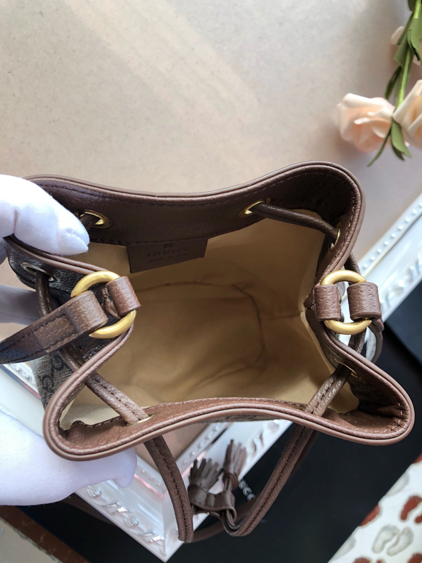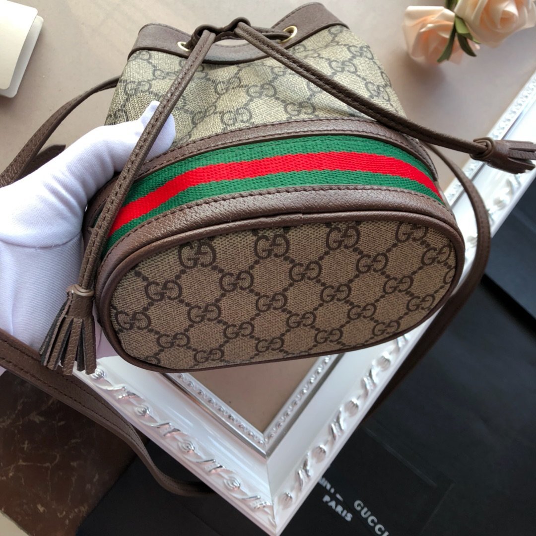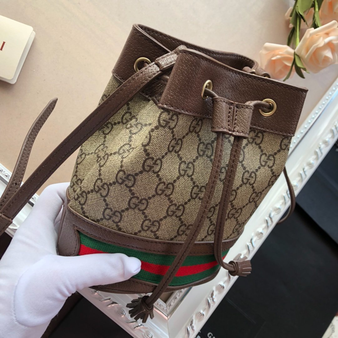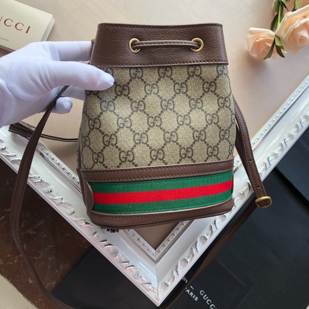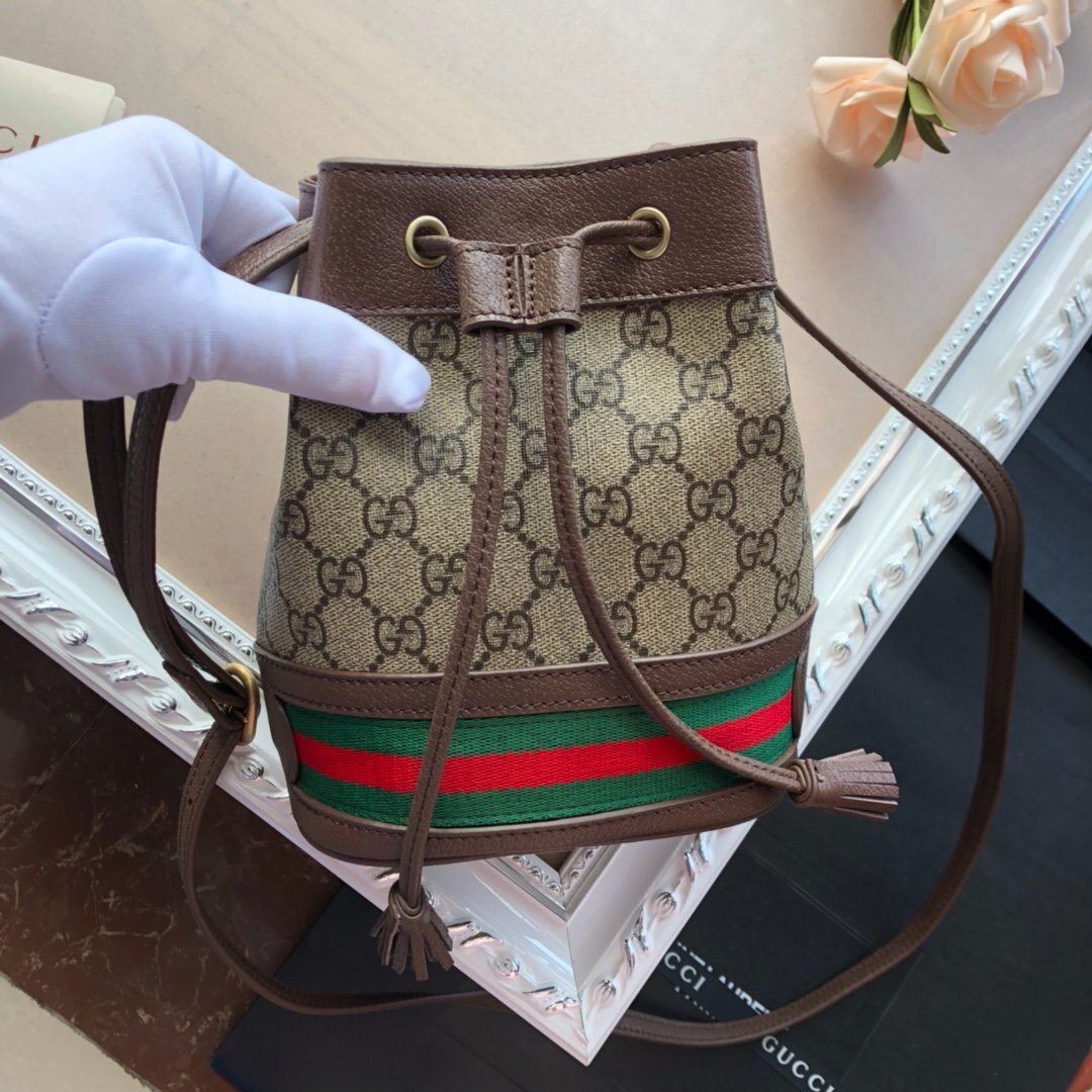 [GUC*I Bag] The latest Ophidia nano mini bucket bag, featuring the classic double G pattern. This style feels even more sophisticated and is a perfect accessory to elevate any outfit. It can be carried by hand or worn as a crossbody bag, and the capacity is definitely sufficient – even a Plus-sized phone fits! It looks absolutely stunning when worn!