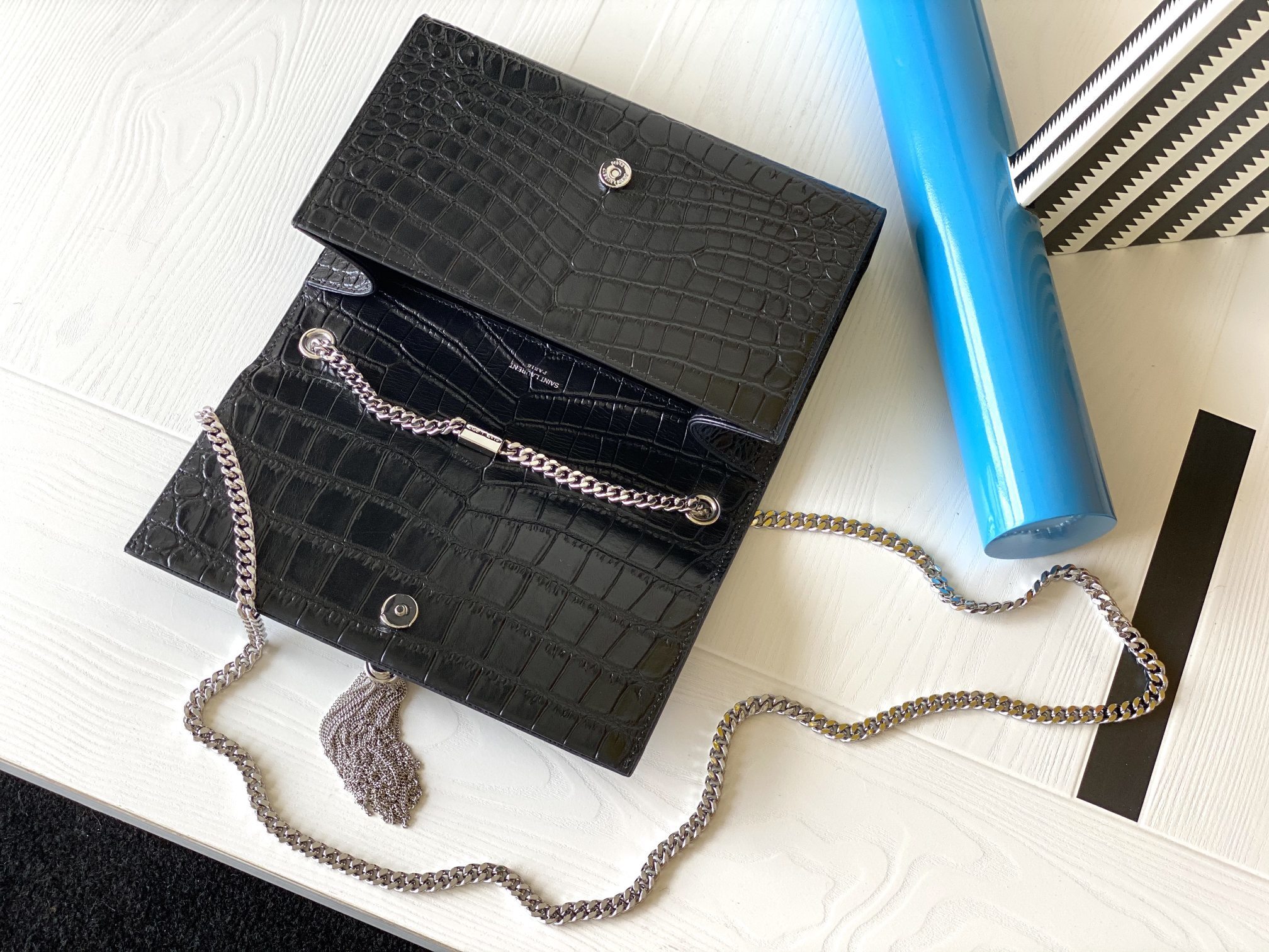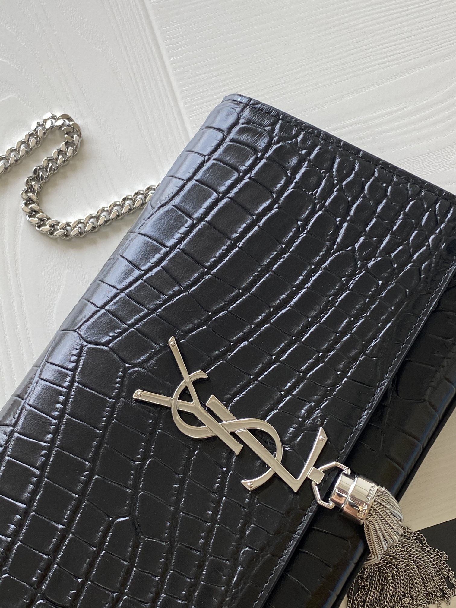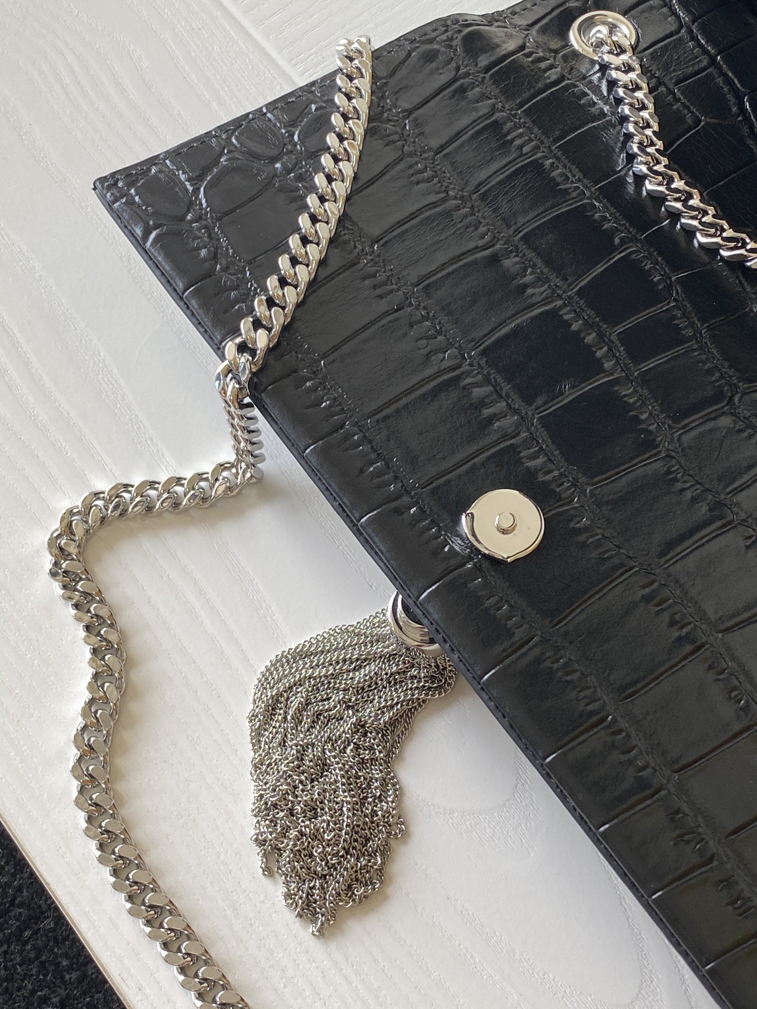 Be the first to review “KATE MEDIUM TASSEL IN CROCODILE-EMBOSSED LEATHER”