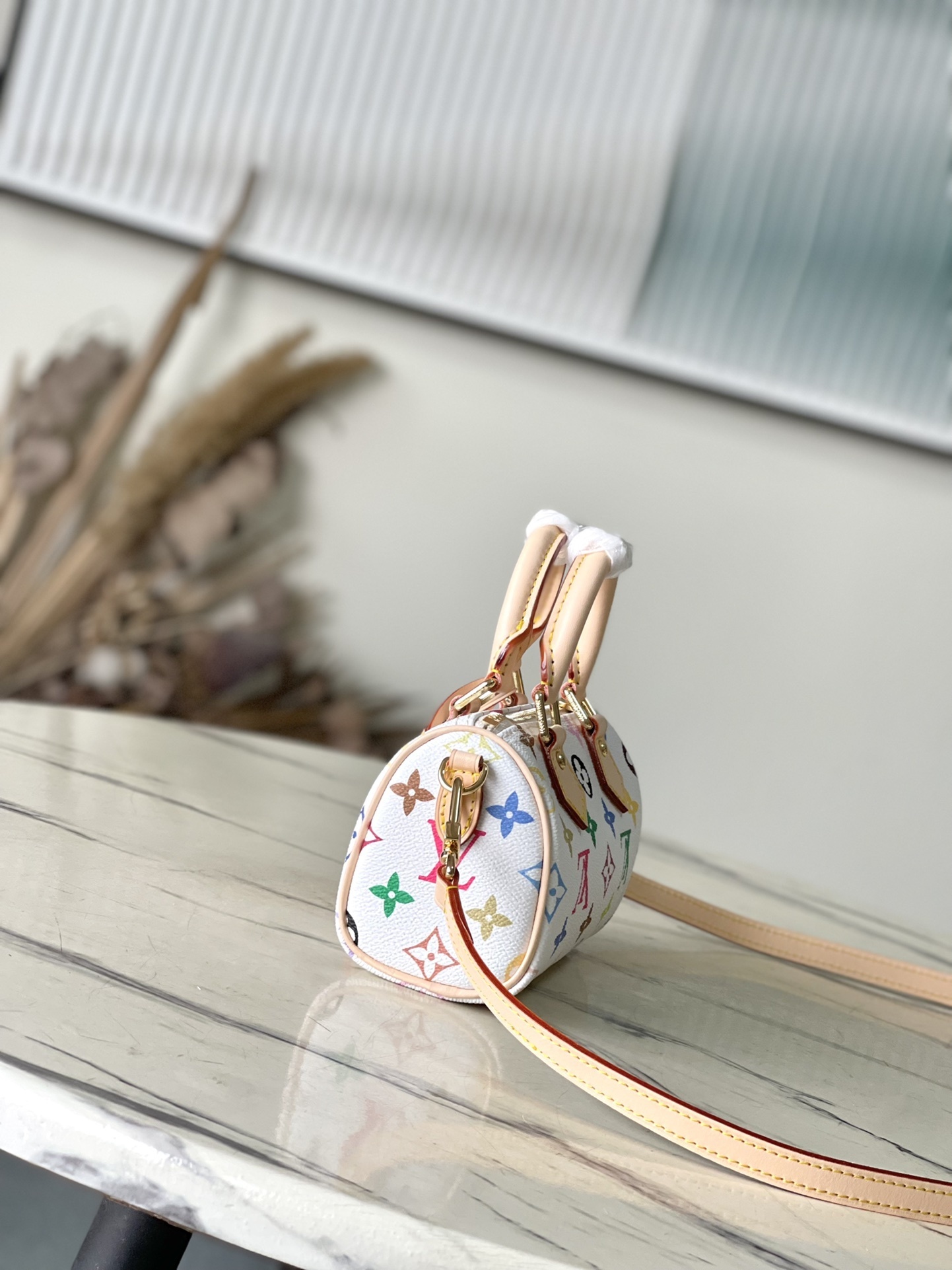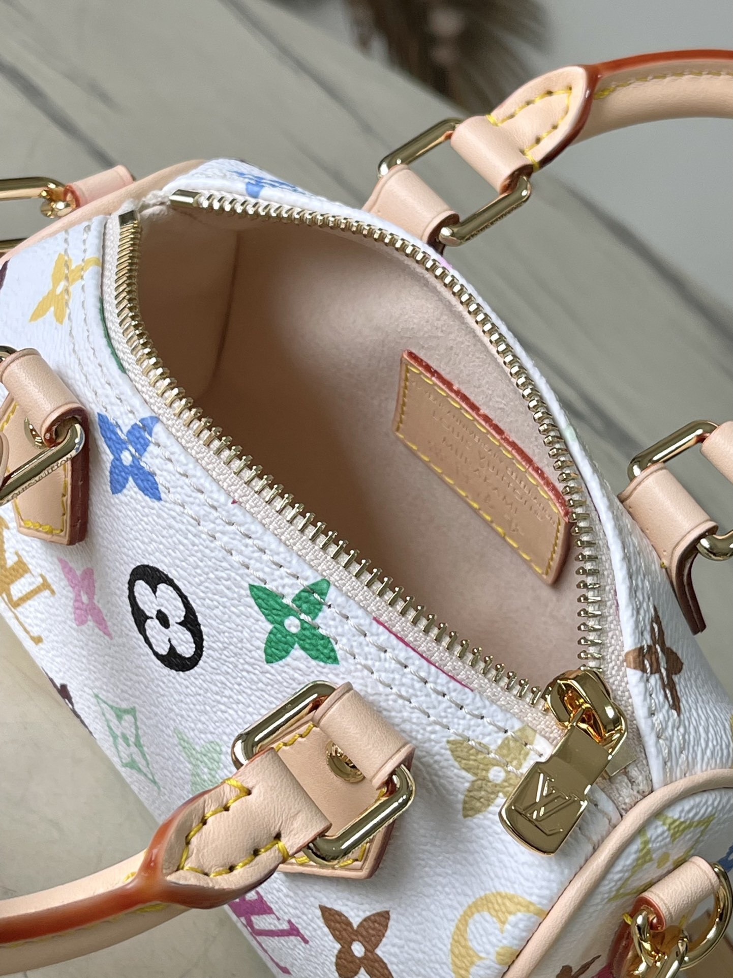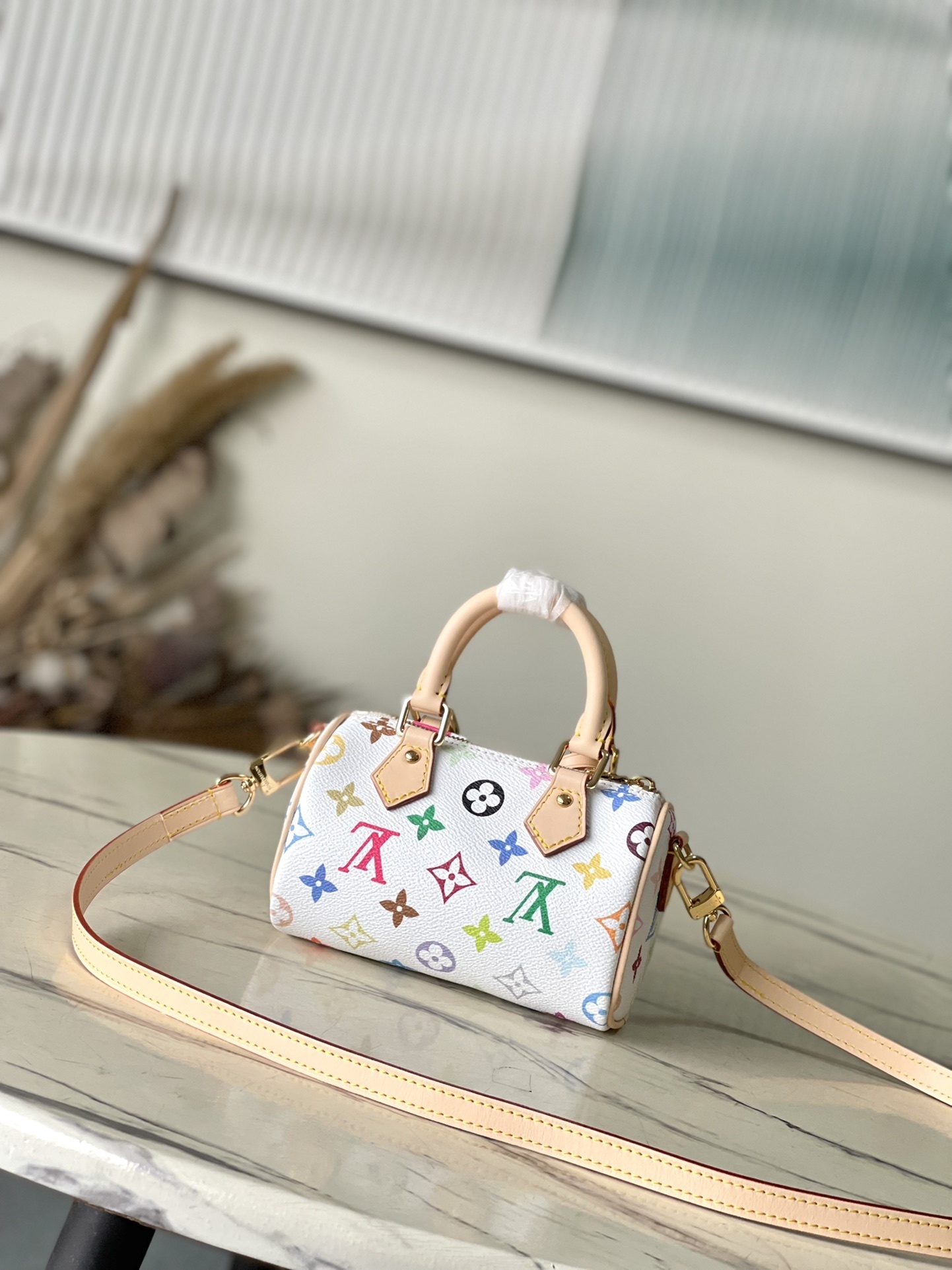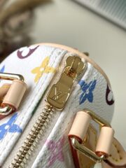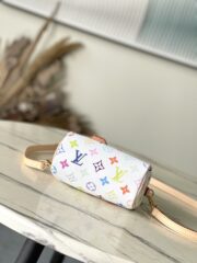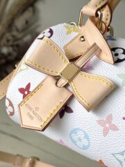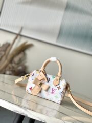 This Nano Speedy handbag features a sleek design crafted from Monogram coated canvas and calfskin trim, its vibrant colors embodying the dynamic style of the Takashi Murakami reissue. The Toron handle and striking padlock pay homage to the brand's travel heritage, while a detachable and adjustable shoulder strap and a chic xTM key pouch complete the look.